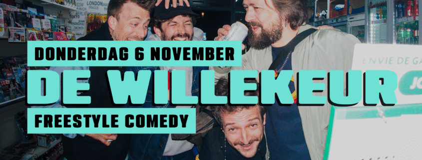 Vier unieke makers, die elk op hun vakgebied creativiteit en humor combineren, komen samen om een onvergetelijke avond freestyle comedy te brengen. Boordevol improvisatie, absurditeit en de magie van het nu. En heel veel Willekeur.